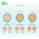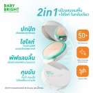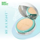เบบี้ไบร์ท รีจูไลท์ไบร์ทแอนด์โกลว์พาวเดอร์แพ็ค เอสพีเอฟ50+ พีเอ++++ 2IN1 แป้งผสมรองพื้น มาพร้อมไฮไลท์ในตลับเดียว สัมผัสบางเบา ไม่อุดตันผิว เสริมด้วยนวัตกรรมการฟื้นบำรุงผิวด้วย PDRN หรือสารสกัด DNA ปลาแซลมอน ที่ช่วยลดเลือนจุดด่างดำ ช่วยให้ผิวแลดูกระจ่างใส มีวิตามินอี (Tocopheryl Acetate) ที่ช่วยลดเลือนริ้วรอยให้แลดูจางลง ผสานเข้ากับ Hyacolor ที่ช่วยเพิ่มความชุ่มชื้น และคงความชุ่มชื้นให้ผิวแข็งแรง ดูเรียบเนียน ทั้งยังมี Multisal Salicylic Acid และวิตามินซี (Ascorbyl Tetraisopalmitate) ช่วยให้ผิวแลดูกระจ่างใส จุดด่างดำแลดูจางลง พร้อมปรับสีผิวให้สม่ำเสมอ และสารสกัดจากน้ำกุหลาบผสานสารสกัดทองคำ (Neotive Rose Gold) ช่วยกระชับรูขุมขน ช่วยให้ผิวเปล่งปลั่ง แลดูอ่อนเยาว์ ปกปิดเรียบเนียนทุกริ้วรอย ควบคุมความมันบนใบหน้า กันน้ำ กันเหงื่อ ติดทน ไม่ไหลเยิ้มระหว่างวัน พร้อมไฮไลท์ที่ช่วยแต่งเติมเพิ่มมิติบนใบหน้า เผยผิวดูโกลว์สวยสุขภาพดีอย่างเป็นธรรมชาติ ปราศจากแอลกอฮอล์ พาราเบน และน้ำหอม