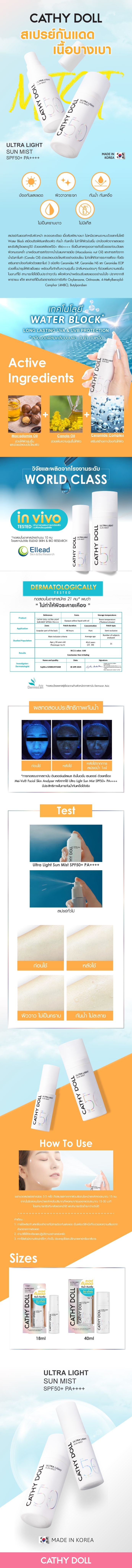 Cathy Doll อัลตร้าไลท์ซันมิสท์ เอสพีเอฟ50+ พีเอ++++ 18ml เคที่ดอลล์