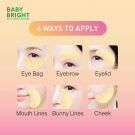 เบบี้ไบร์ท โกลด์แอนด์วิต้าดริปแอมพูลอายมาสก์ แผ่นเจลมาสก์สำหรับบำรุงใต้ตาโดยเฉพาะ มาพร้อมคุณประโยชน์จากทองคำ (Gold) ที่มีคุณสมบัติเป็นสารแอนตี้ออกซิแดนท์ ช่วยฟื้นฟูผิวใต้ตาแลดูกระชับเรียบเนียน สารสกัดจากบากูชิล (Bakuchiol) ให้ประสิทธิภาพเสมือนเรตินอล อ่อนโยนต่อผิว ช่วยชะลอการเกิดริ้วรอยก่อนวัย ผสานอนุพันธ์วิตามินซี และ Niacinamide ช่วยลดเลือนรอยคล้ำใต้ตาให้แลดูกระจ่างใสเปล่งปลั่ง มีไฮโดรไลซ์ คอลลาเจน (Hydrolyzed Collagen) กรดไกลโคลิค (Glycolic Acid) และ Squalane ช่วยเติมความชุ่มชื้นบริเวณใต้ตาให้ดูเรียบเนียน แลดูอ่อนเยาว์ ฟื้นฟูผิวบริเวณใต้ตาแลดูกระจ่างใส ทั้งยังมีเปปไทด์ (Peptide) ช่วยกักเก็บความชุ่มชื้น มอบผลลัพธ์ใต้ตาอิ่มฟู เฟิร์มกระชับ เนียนใสอย่างเป็นธรรมชาติ ปราศจากสารที่ก่อให้เกิดการระคายเคือง 10 ชนิด Fragrance, Paraben, Silicone, Alcohol, Mineral, Petrolatum, MIT, Phenoxyethanol, Triclosan และ Formaldehyde & Steroid