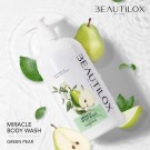 เนรมิตผิวสวยเนียนนุ่ม สัมผัสกลิ่นหอมหวานสดชื่น ด้วยเจลอาบน้ำ MIRACLE BODY WASH กลิ่น Green Pear สูตร pH 5.5 ช่วยคงความชุ่มชื้นให้ผิว พร้อมบำรุงผิวกายด้วยคุณค่าจากสารสกัดลูกแพร์ อุดมด้วยวิตามินหลากชนิด ช่วยผลัดเซลล์ผิวที่เสื่อมสภาพอย่างอ่อนโยน ให้ผิวกระจ่างใสแลดูสุขภาพดีอย่างเป็นธรรมชาติ ช่วยชำระล้างสิ่งสกปรกได้อย่างหมดจด ล้างออกง่าย ผิวนุ่มลื่น ไม่แห้งตึงหลังอาบน้ำ