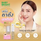 เบบี้ไบร์ท โกลด์แอนด์วิต้าดริปอายโรลเลอร์เซรั่ม ตัวช่วยดูแลผิวรอบดวงตากับลูกกลิ้งที่ออกแบบมาสำหรับรอบดวงตาโดยเฉพาะ มาพร้อมคุณประโยชน์จากทองคำ (Gold) ที่มีคุณสมบัติเป็นสารแอนตี้ออกซิแดนท์ ช่วยฟื้นบำรุงผิวใต้ตาแลดูกระชับเรียบเนียน ผสานอนุพันธ์วิตามินซี (Ascorbic Acid) และไนอะซินาไมด์ (Niacinamide) ช่วยลดเลือนรอยหมองคล้ำใต้ตาให้แลดูกระจ่างใสเปล่งปลั่ง สารสกัดจากบากูชิล (Bakuchiol) ให้ประสิทธิภาพเสมือนเรตินอล อ่อนโยนต่อผิว และคอลลาเจน (Hydrolyzed Collagen) ช่วยลดเลือนริ้วรอยและชะลอการเกิดริ้วรอยก่อนวัย มีกรดไกลโคลิค (Glycolic Acid) และสควาเลน (Squalane) ช่วยเสริมให้ผิวแข็งแรง พร้อมเติมความชุ่มชื้นบริเวณใต้ตาให้ดูเรียบเนียน แลดูอ่อนเยาว์ ฟื้นบำรุงผิวบริเวณใต้ตาแลดูกระจ่างใส ทั้งยังมีเปปไทด์ (Peptide) ช่วยคงความชุ่มชื้น มอบผลลัพธ์ใต้ตาตึง กระชับ กระจ่างใส ดูสุขภาพดีอย่างเป็นธรรมชาติ ปราศจากแอลกอฮอล์ มิเนอรัลออยล์ และพาราเบน