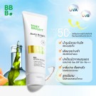 เบบี้ไบร์ท ออร่าไบร์ทซันโลชั่น เอสพีเอฟ50+ พีเอ+++ โลชั่นกันแดดพร้อมบำรุง ไร้กลิ่น ซึมซาบไว ไม่เหนียวเหนอะหนะ เผยผิวกระจ่างใสขึ้นหลังทา ปกป้องผิวจากรังสี UVA/UVB ป้องกันแดดได้มากถึง 50 เท่า เพิ่มความชุ่มชื้น เสริมเกราะป้องกันผิวให้แข็งแรงด้วย 8D Hyaluronic Acid และสารสกัดธรรมชาติจากสาหร่ายสไปรูลินา (Spirulina) หรือสาหร่ายสีเขียวแกมน้ำเงิน ที่มีสารแอนตี้ออกซิแดนท์ ช่วยบำรุงผิวให้มีความยืดหยุ่น ผสานสารสกัดจากน้ำมันมะพร้าว (Coconut Oil) และน้ำมันเมล็ดแอปริคอต (Apricot Kernel Oil) ช่วยเติมความชุ่มชื้นให้ผิวเปล่งปลั่ง มีสารสกัดจากสับปะรด (Pineapple Extract) และไนอะซินาไมด์ (Niacinamide) ช่วยผลัดเซลล์ผิวอย่างอ่อนโยน ให้ผิวพรรณแลดูกระจ่างใส เรียบเนียน ทั้งยังมีสารสกัดจากอะโวคาโด (Avocado Extract) ที่อุดมไปด้วยวิตามิน A, B1, B2, B6, D และ E ฟื้นบำรุงสภาพผิวที่แห้งกร้าน ให้กลับมานุ่มชุ่มชื้น เผยผลลัพธ์ผิวเนียนนุ่ม แลดูกระจ่างใสอย่างเป็นธรรมชาติ พร้อมเต็มที่กับทุกกิจกรรม เหมาะกับผิวที่บอบบาง แพ้ง่าย ปราศจากสารที่ก่อให้เกิดการระคายเคือง 7 ชนิด ได้แก่ Paraben Free, Phthalates Free, Lanolin Free, Sulfate Free, Fragrance Free, Formaldehyde Free และ Oxybenzone Free อีกทั้งยังปราศจากสารสกัดที่มาจากสัตว์ จึงปลอดภัยต่อผู้ใช้งาน ไม่มีการทดลองในสัตว์